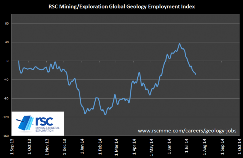 Accompanied by that sense of déjà vu, the RSC Mining and Exploration Geology Employment Index fell again this week with a further 5% slide in advertising levels worldwide this week.
