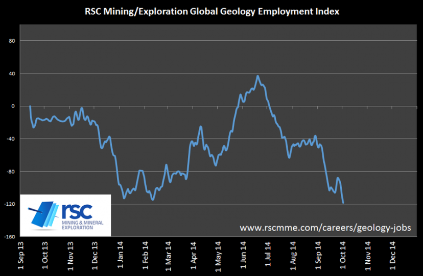 Last week the RSC Mining & Exploration Global Geology Employment Index hit a new all-time low. Well, all-time being since we started records just over a year ago. It’s not a pretty picture but within reason it’s only about as bad as it got back in January and February this year. Where to from here … is a small recovery possible before Christmas? Let us know your thoughts.