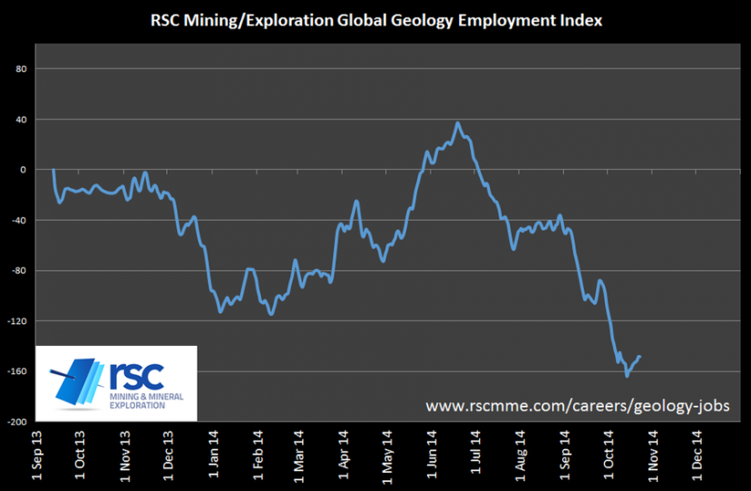 It’s been a while since our last update, but as you might have guessed there was nothing positive to report. There still isn’t. There are less advertised jobs available today for metals mining and exploration geologists than any time since RSC started recording 15 months ago. The picture below says it all.