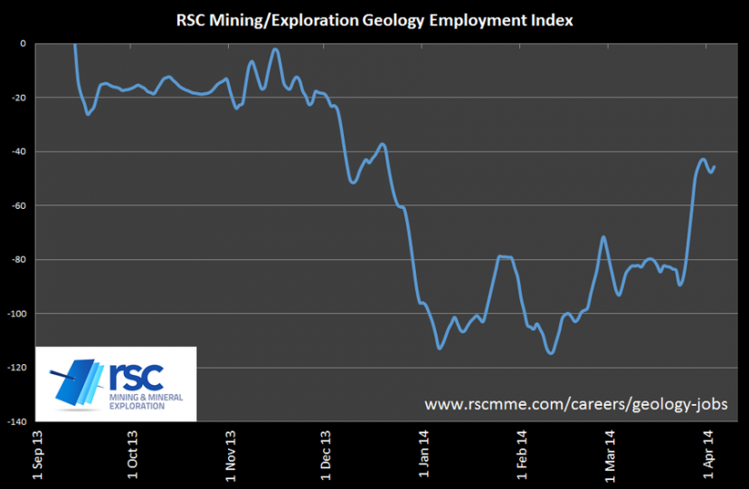 This week the RSC Mining and Exploration Geology Employment Index increased 8%, returning to the levels seen in mid-December last year.